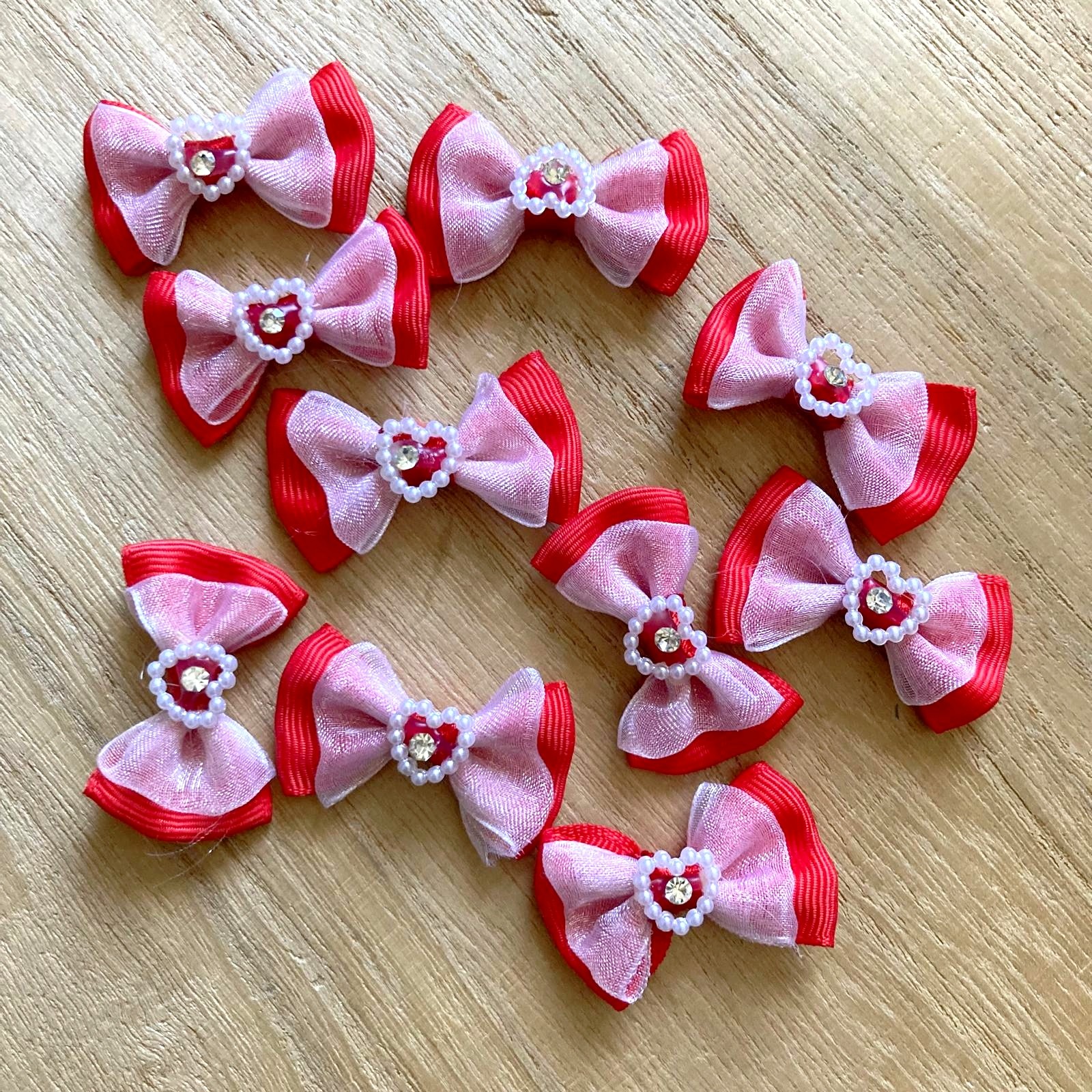 Lot de 10 petits noeuds papillon Rouge voile organza blanc , coeur perlé ** 4 x 2,5 cm ** Couture, carterie, poupée - FDS036