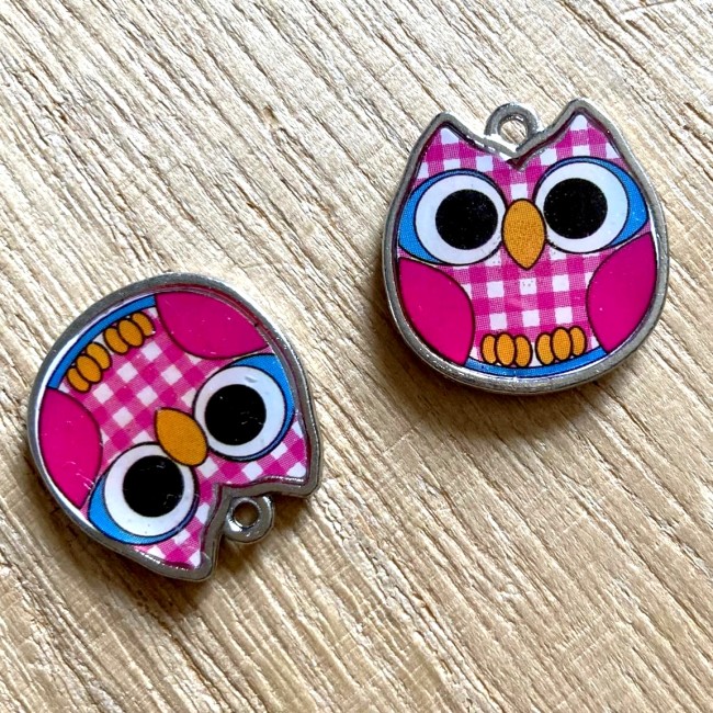 BRELOQUE / CHARM - Hibou chouette en métal argenté émaillé