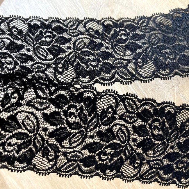 2,10 mètres de GALON DENTELLE élastique fleurs feuilles noir ** 6 cm ** Couture, carterie, poupée - FDS041