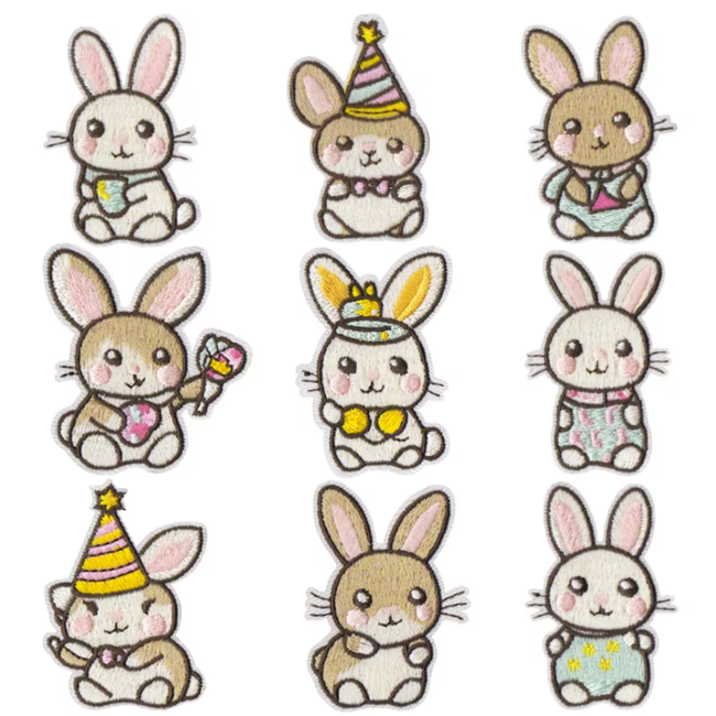 Écusson patch brodé thermocollant - Petit lapin enfantin, modèle au choix ** 4 x 5,5 cm ** Applique à repasser
